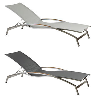 Die Venedig-Serie ist aus hochwertigem Edelstahl in Kombination mit Sunproof® Sling in Stoffoptik und -haptik hergestellt. Die Armlehnen bestehen aus Premium Teak. Es gibt folgende Ausführungen: Stapelstuhl, Stapelstuhl hoch, Swingstuhl, Swingstuhl hoch, Hochlehner und Liege.