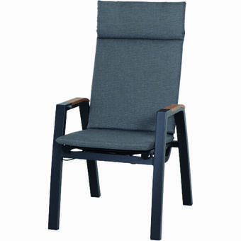 Die Ancona-Serie ist aus hochwertigem Edelstahl in Kombination mit Batyline®-Eden Textilenegewebe in Stoffoptik und -haptik hergestellt. Die Armlehnen bestehen aus grauem Aluminum. Es gibt folgende Ausführungen: Stapelstuhl, Stapelstuhl hoch, Swingstuhl, Swingstuhl hoch, Hochlehner, Bank und Liege.