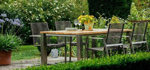 Der besondere Edelstahl-Materialmix - Edelstahl/304 ist resistent gegen Wasser, Wasserdampf, Luftfeuchtigkeit und Speisesäuren. Kombiniert mit Premium-Teakholz oder Aluminium und hochwertigen Textilenegewebe entstehen zeitlose, elegante Gartenmöbel auf höchstem Niveau.