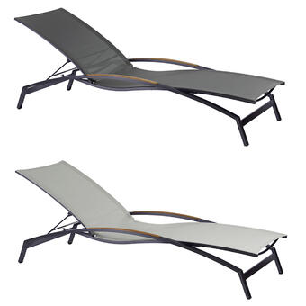 Mit Teak-Armlehne, oder Aluminium-Armlehne, Textilene schwarz/ silber oder silber/ weiss