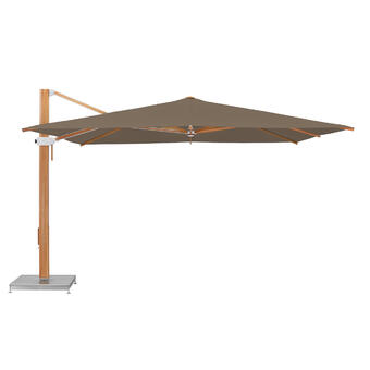 Die First Class unter den Holzschirmen heisst ab sofort - AURA. Quadratisch im Format, sorgt dieser einzigartige Freiarmschirm für magische Momente. Dank dem Seitenmast ist die gesamte, grosszügige Fläche unter dem Schirmdach frei nutzbar. Der AURA bietet mehr als Schatten und Komfort: Ihn umgibt ein Flair der Geborgenheit, das seinesgleichen sucht. Der AURA aus Eukalyptusholz ist für ein langes Leben gebaut. Er besitzt einen stabilisierenden Aluminiumkern und pariert dadurch Windstärken von 45 km/h. Der AURA lässt sich kinderleicht bedienen und kann bei tief stehender Sonne sowohl gegen den Mast als auch um 360° um den Mast gedreht werden.
