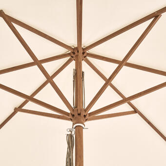 Ganz schön stabil & sicher: der PIAZZA Schirm hat ein Aluminiumgestell in täuschend echter Holzoptik.